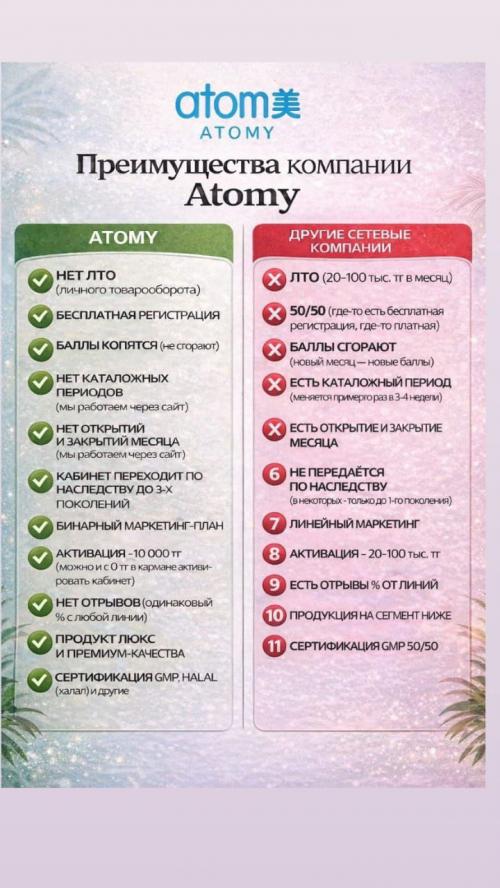 Я представляю Atomy — корейскую компанию, которая предлагает качественные продукты для здоровья, красоты и дома.